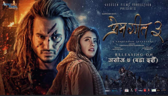 आजदेखि बहुप्रतिक्षित चलचित्र प्रेमगीत-३ प्रदर्शनमा आएको छ। यो चलचित्र नेपाललगायत विश्वका १ हजार २ सय हलमा एकसाथ प्रदर्शनमा आएको हो। तर, ‘प्रेमगीत-३’ को हिन्दी संस्करण भने प्राविधिक कारण जनाउँदै आज नेपालमा भने रिलिज भएन।