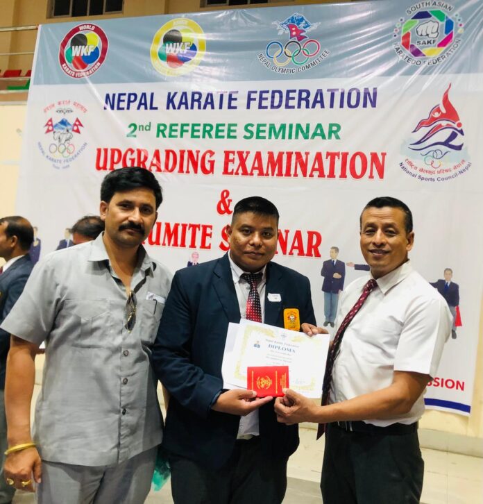 जापान गाेजु रियु कराँते डाे मिसन संघ नेपालबाट ब्लकबेल्ट थर्ड डन लिएपछि उनलेे नेपाल कराँते महासंघबाट नेशनल रेफ्री समेत लिएका थिए।