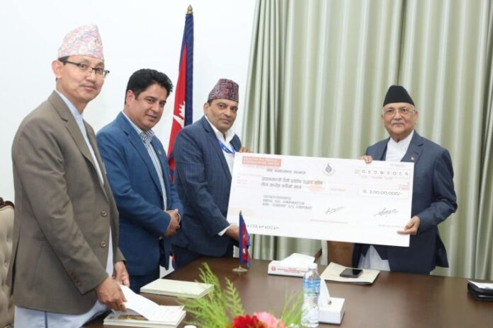 निगमका कार्यकारी निर्देशक चण्डिका भट्टले प्रधानमन्त्री केपी शर्मा ओलीको उपस्थितिमा प्रधानमन्त्री दैवी प्रकोप उद्धार कोषमा तीन करोड रुपैयाँको चेक हस्तानान्तर गरेका छन् ।