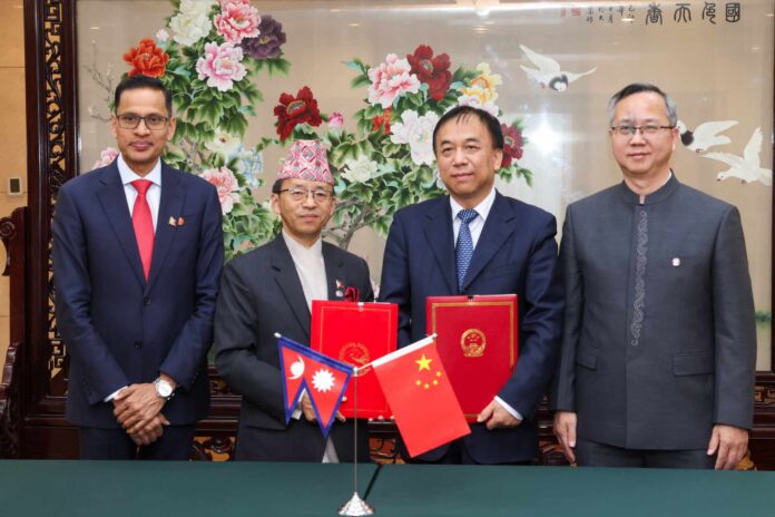 नेपाल र चीन सरकारबिच बीआरआई फ्रेमवर्कमा हस्ताक्षर भएको छ । मंगलबार नेपाल र चिनियाँ पक्षका उच्चस्तरीय भेटवार्ताका क्रममा उक्त फ्रेमवर्कमा हस्ताक्षर हुन नसकेपनि भोलिपल्ट भने हस्ताक्षर भएको हो।