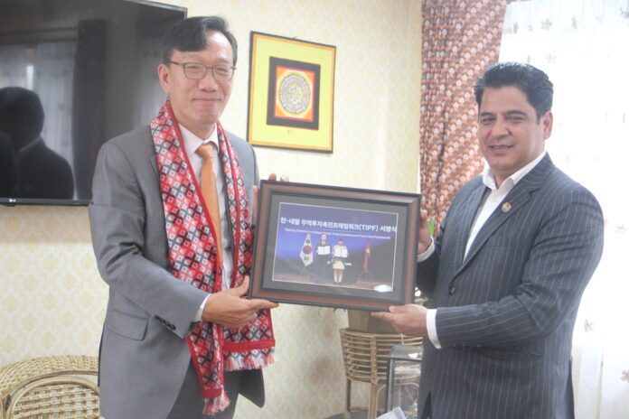 उद्योगमन्त्री भण्डारी र कोरियन राजदूत थेयङबिच टिआइपीएफ सम्झौता कार्यान्वयनका विषयमा छलफल