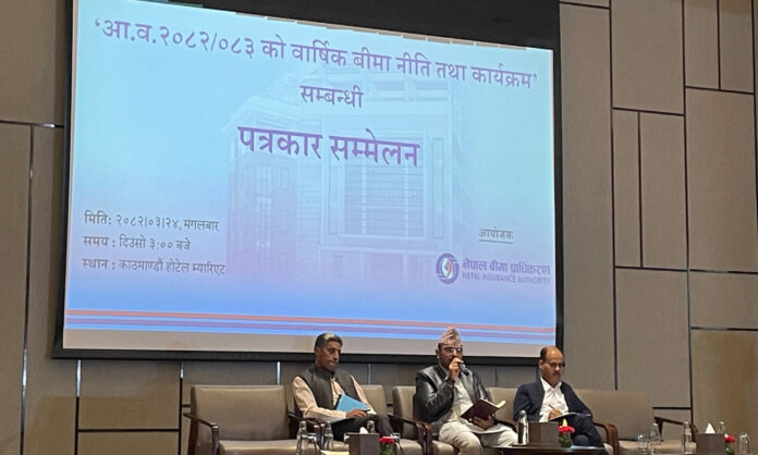 काठमाडौं । नेपाल बीमा प्राधिकरणले आर्थिक वर्ष २०८२/८३ को वार्षिक बीमा नीति तथा कार्यक्रम सार्वजनिक गरेको छ । प्राधिकरणले एक कार्यक्रमको आयोजना गर्दै आगामी आर्थिक वर्षको नीति तथा कार्यक्रम सार्वजनिक गरेको हो ।
