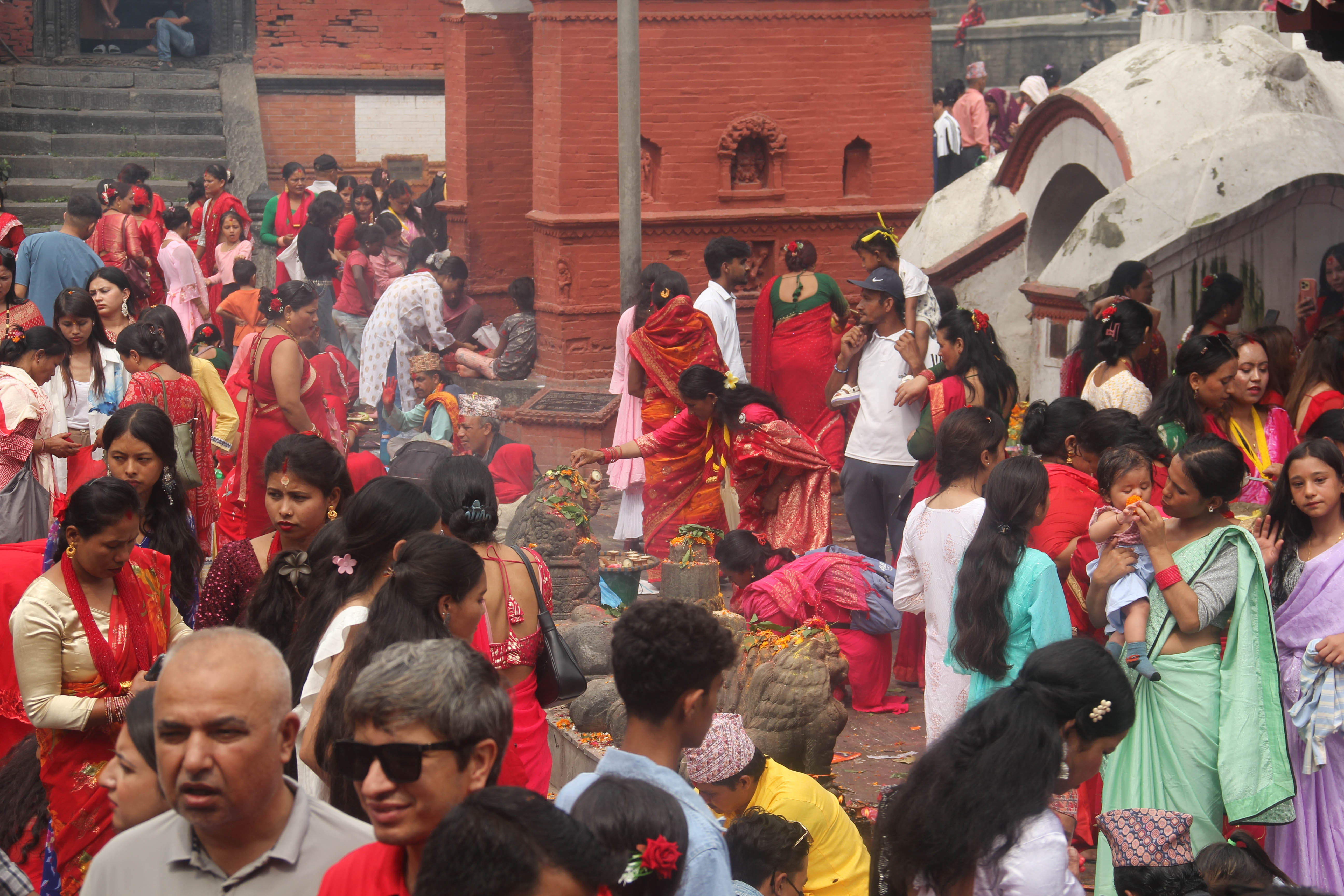 हिन्दु नारीहरुको महान चाड तीजको अवसरमा आज(मंगलबार)बिहानैदेखि पशुपति मन्दिरमा दर्शन गर्नेहरुको भीड देखियो ।